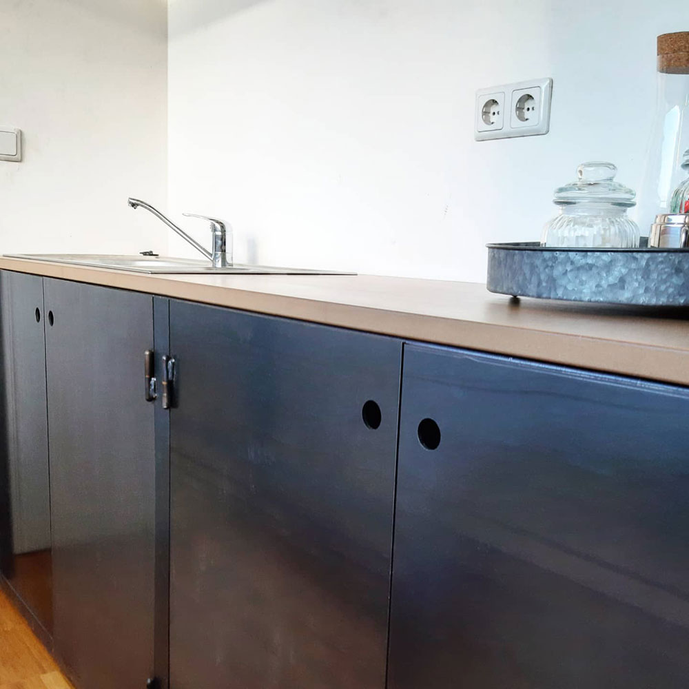 Im Bereich Heim und Garten fertigen wir kreative und präzise Dinge aus Metall. In unserer Werkstatt entstehen durch handwerkliches Geschick und modernste Technik individuelle Möbelstücke, die sowohl robust als auch stilvoll sind. Dazu gehören beispielsweise Schrank- und Regalsysteme, Garderoben, Tischgestelle und Ofenverbauungen die durch ihre Metallteile eine moderne Note erhalten.