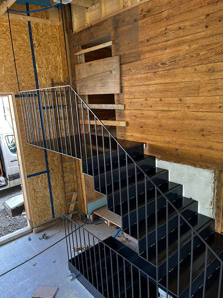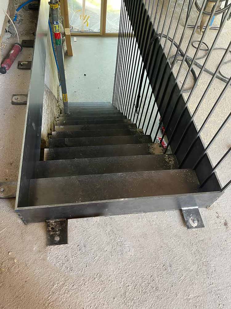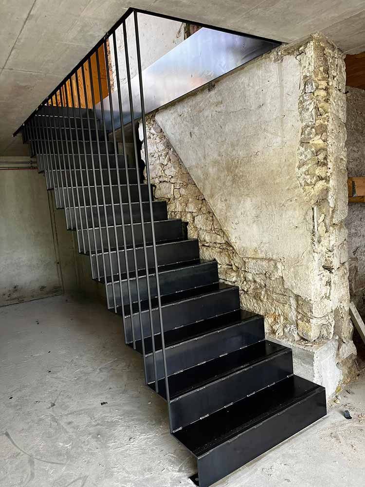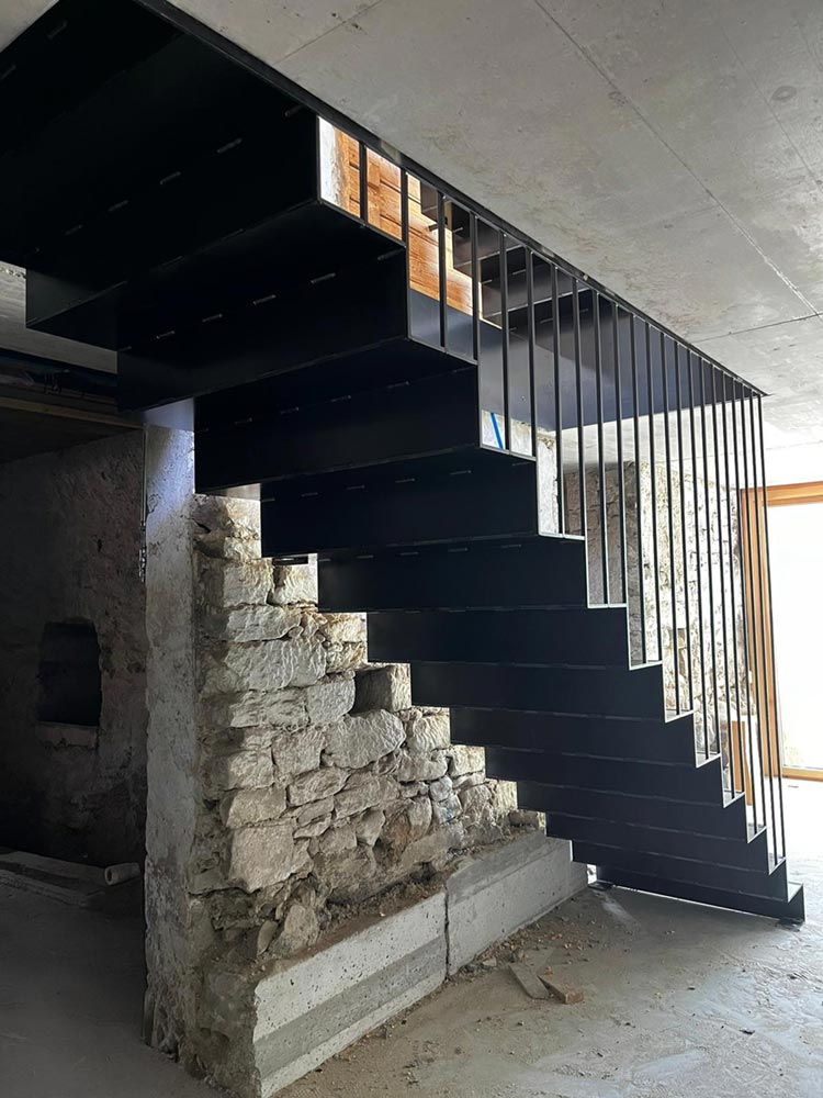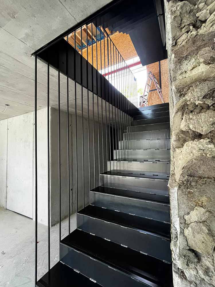 Mehrgeschoßige Wendeltreppe Stahl & Holztritte
