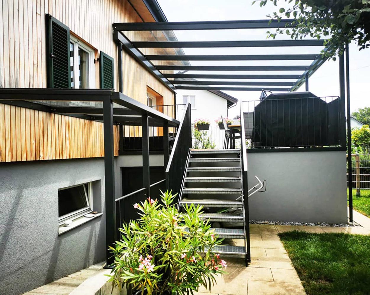 Durch maßgeschneiderte Konstruktionen wird nicht nur Schutz vor Witterung geboten, sondern auch eine ästhetische Ergänzung zum Gebäude geschaffen. Hochwertige Schweiß- und Verbindungsarbeiten sorgen zudem für Sicherheit und Langlebigkeit der Konstruktion.